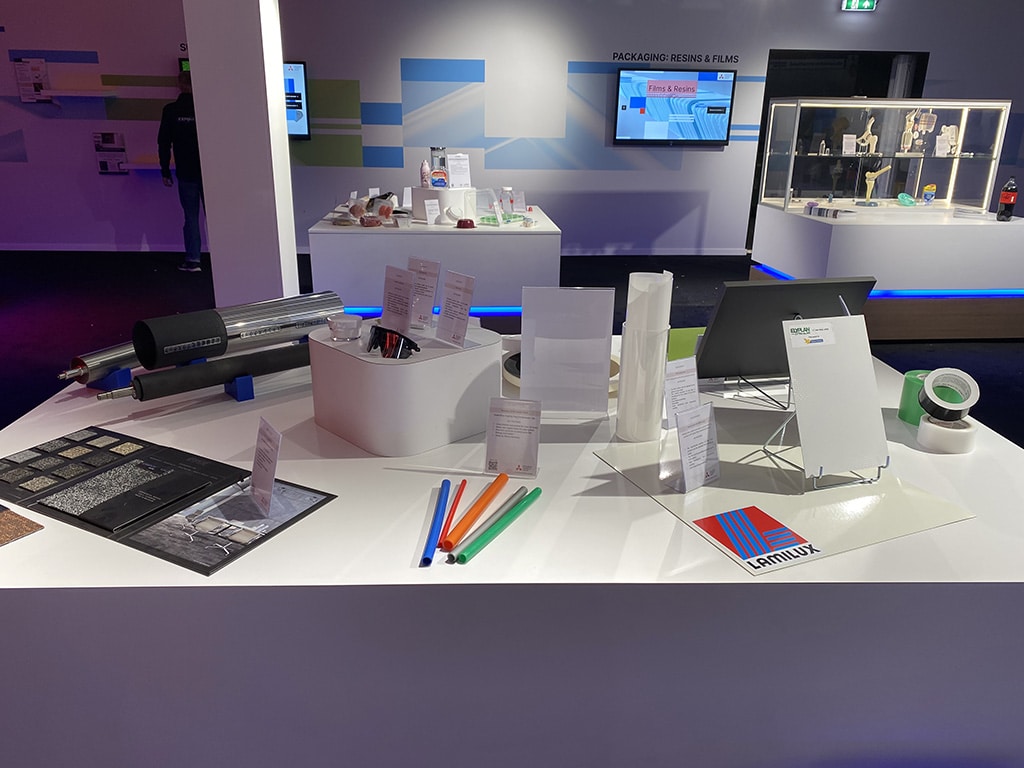 Die Mitsubishi Chemical Group präsentierte sich wie zuletzt 2019 in einem separaten Gebäude neben den üblichen Hallen. Dies bot die Möglichkeit, auf zwei Etagen auszustellen und einen ansprechenden Raum zu schaffen, um unseren Kunden unsere innovativen Produkte und Ideen zu präsentieren.